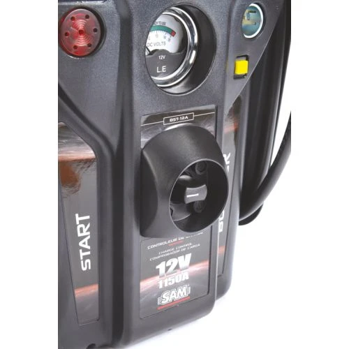 Ce booster de dĂ©marrage de la marque Sam Outillage est Ă©quipĂ© de pinces, de câbles et de fusible qui sont 100 % cuivre pour une parfaite restitution de l’Ă©nergie de charge. L’appareil dispose de deux protections. En premier, il y a le dispositif anti inversion de polaritĂ© avec buzzer qui Ă©vite tout dommage sur le calculateur du vĂ©hicule. Le second est un signal qui est toujours en marche mĂŞme si le booster est Ă©teint.