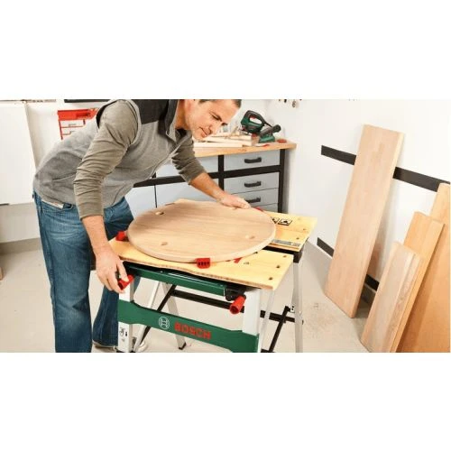 Cette table de travail PWB 600 de la marque Bosch est un équipement en aluminium repliable à plat pour un transport facile et un rangement rapide. Les pièces rondes et les pièces de forme complexes peuvent être fixées en toute sécurité grâce à ses mâchoires de serrage flexibles. La surface du support est en bambou robuste pour de la rigidité lors du travail.