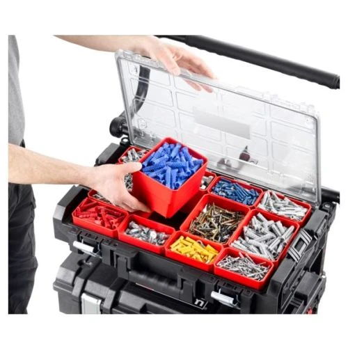Cette mallette organiseur FS100 dispose d’un couvercle transparent fait en polycarbonate pour une visibilitĂ© totale.